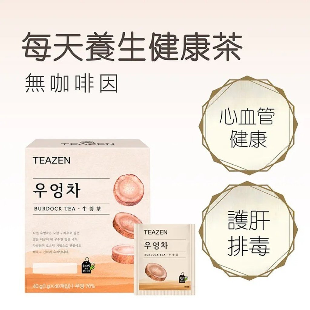 享有 「東洋人參」之美譽的牛蒡茶,含有豐富的膳食纖維和多酚,可排毒瘦身、祛濕清熱、 預防三高 ,具多重健康功效。TEAZEN 牛蒡糙米茶特別加入糙米,健脾開胃,具養生保健功能;而且不含咖啡因,零負擔,適合任何人飲用。