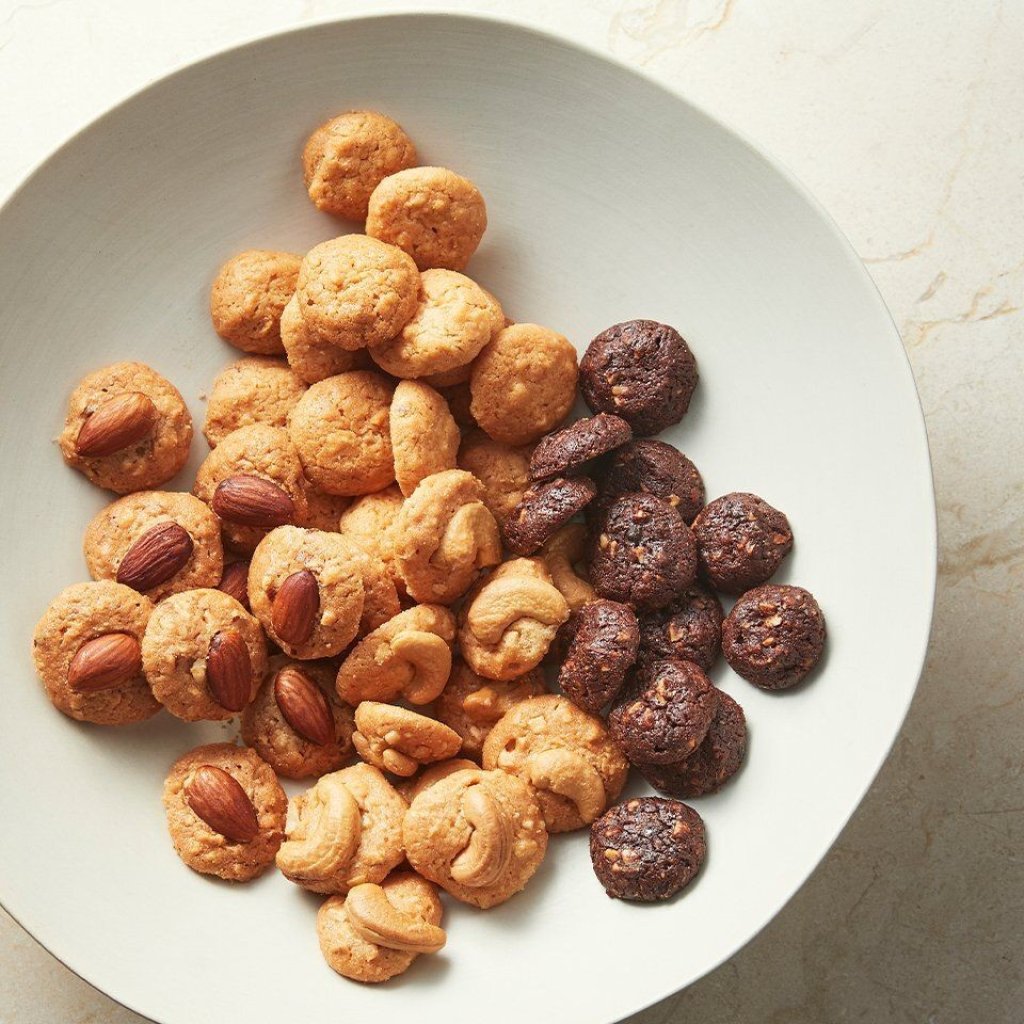 以低溫慢焙方式烘烤出香氣濃郁的酥脆果仁餅。