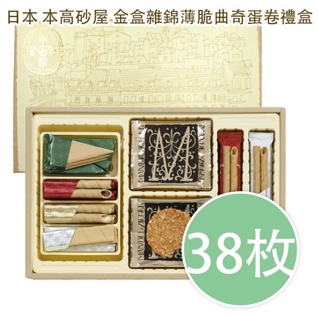 31/12 ⭐️日本手信⭐️#K17#日本 本高砂屋 金盒雜錦薄脆曲奇蛋卷禮盒(38枚入)💖預計農歷新年前派貨💖(滿$399包郵)
