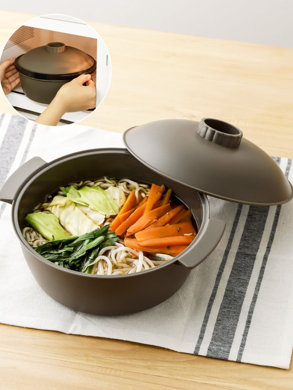 配備濾網設計,可於微波爐製作蔬菜豐富的拉麵。