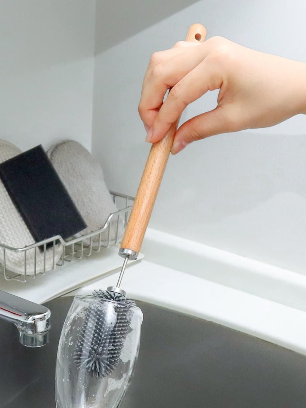 加長手柄方便清潔高身容器。