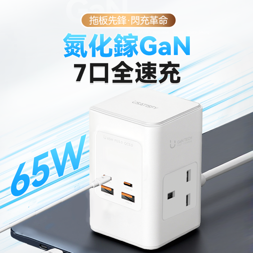 18/4⭐️Yohome⭐#R13#美國USATISFY GaN Master65W氮化鎵全快充7口智控安規伸縮充電線收納迷你拖板白色💖預計5月初至中派貨💖(滿$399包郵)